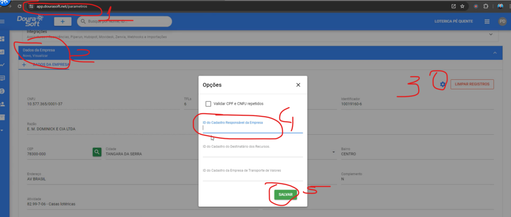 - Dentro do guia de parâmetros, encontre uma área destinada aos dados da empresa.