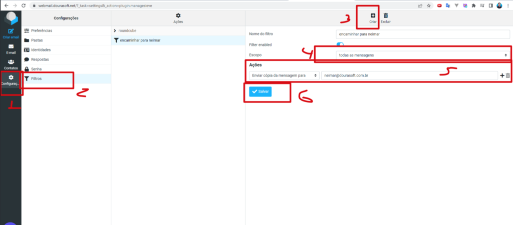 Em alguns momentos pode ser que seja necessário realizar redirecionamento de um e-mail pra existente, para por exemplo, um novo colaborador dentro da DouraSoft.