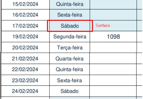 - Exemplo: Se o concurso 1000 foi sorteado em 01/10/2024, a data de início do concurso 1001 será em 01/11/2024.