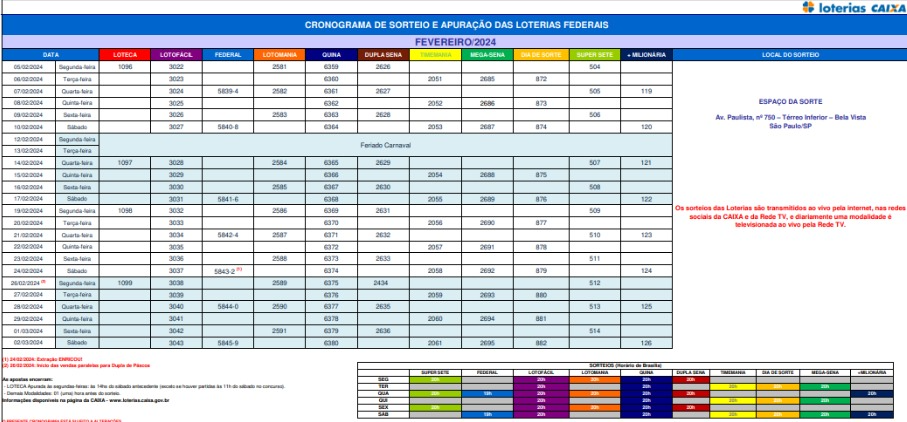 - Nele você pode acessar os calendários de sorteios das loterias.