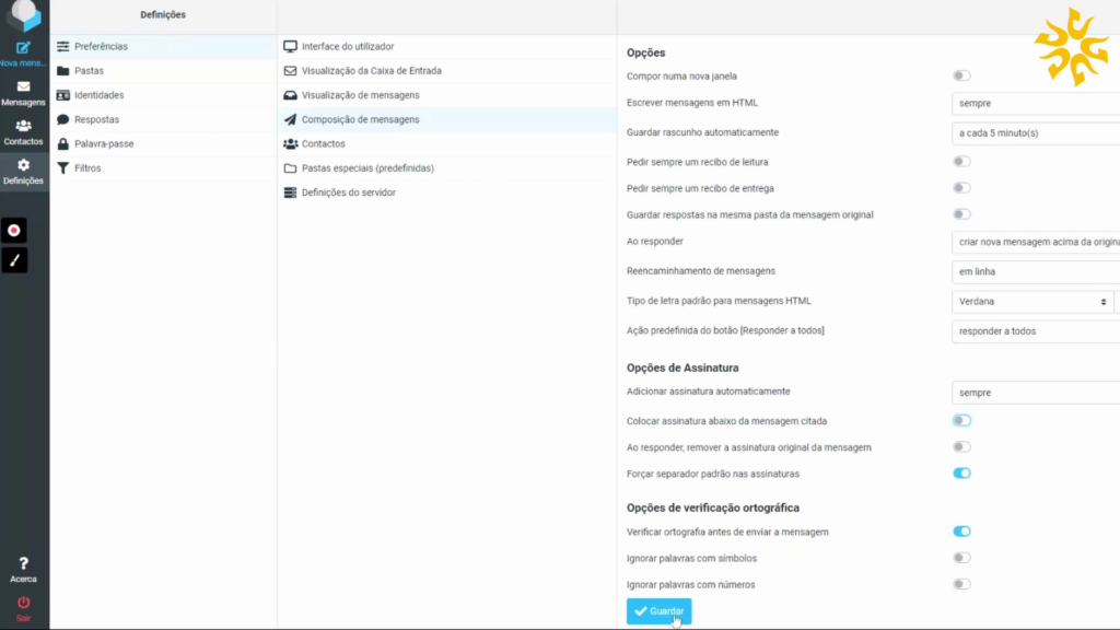 Feito esses procedimentos, basta clicar em Guardar e seu e-mail estará apto para enviar as respostas acima de outro e-mail.