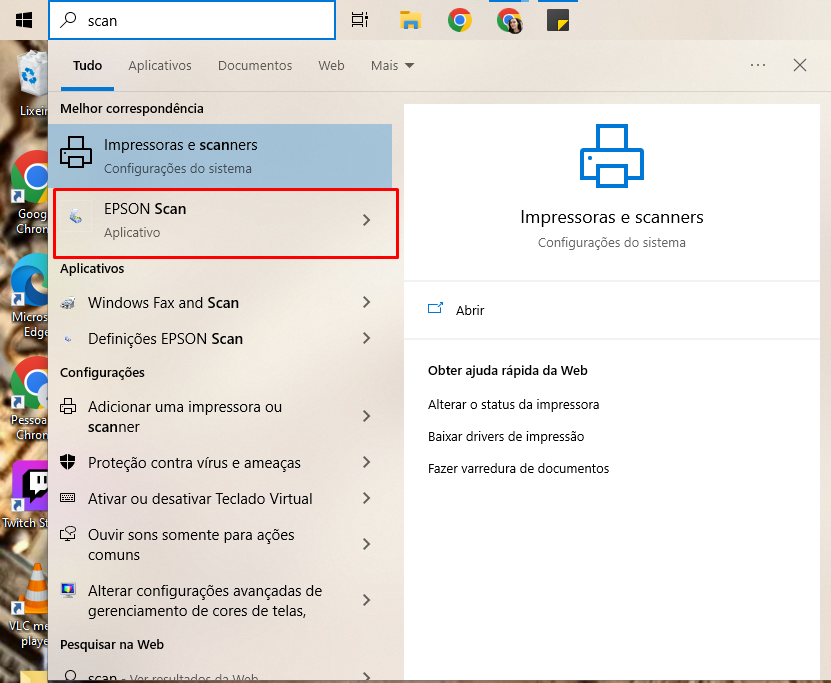 3. No notebook onde foram baixados os Drivers da Impressora, acesse o software Epson Scan.