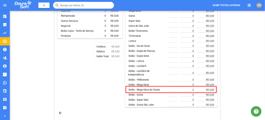 Ao preencher o caixa, você deve se certificar que o Bolão – Mega-Sena da Virada concurso 2955 está preenchido no Resumo do caixa na loteria Bolão – Mega-Sena da Virada.